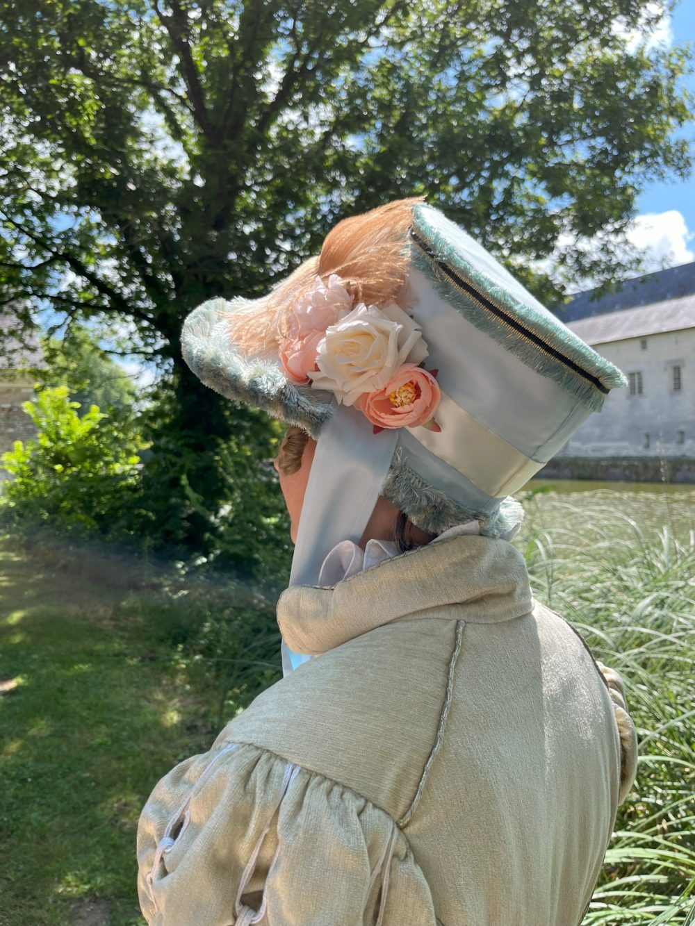 Chapeau taffetas de soie , galons frange, plumes et fleurs (2)