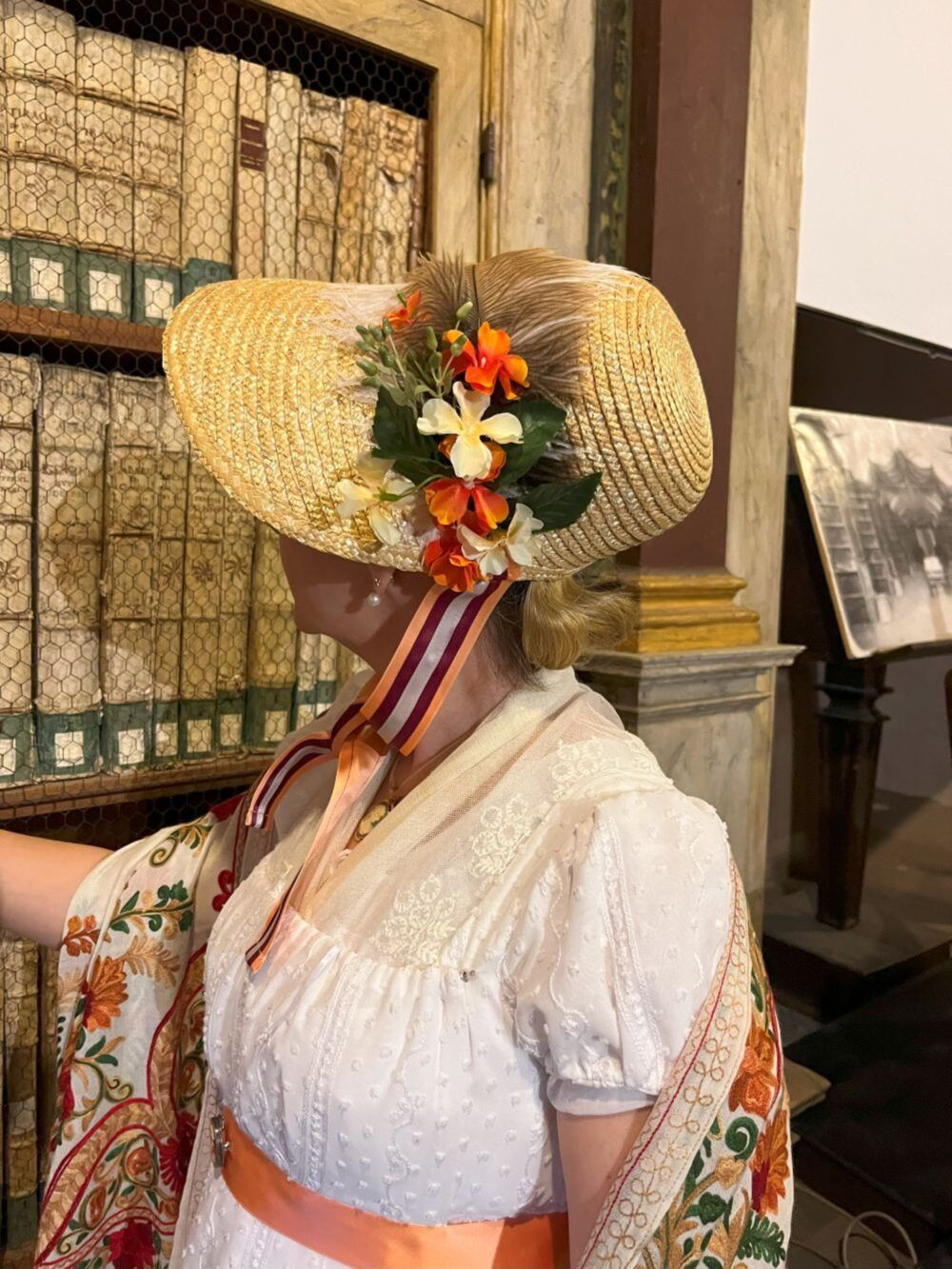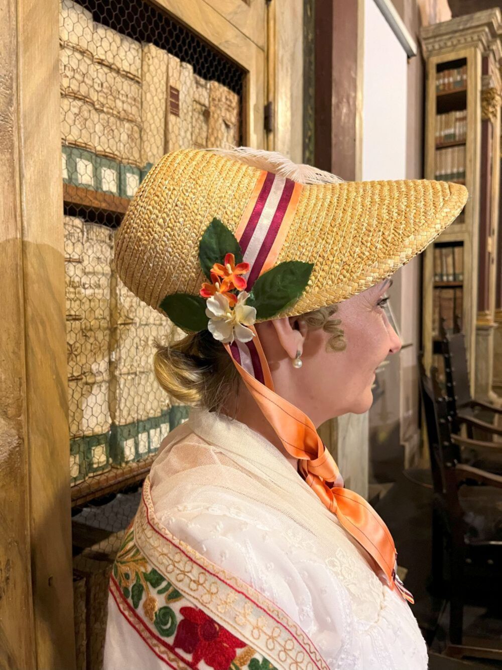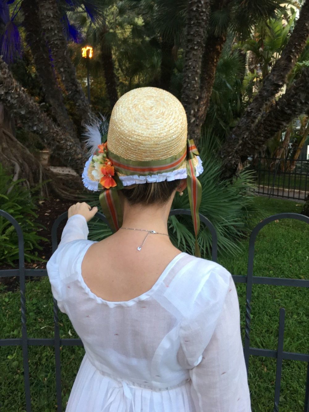 Bonnet paille, ruban satin, plumes et fleurs (3)