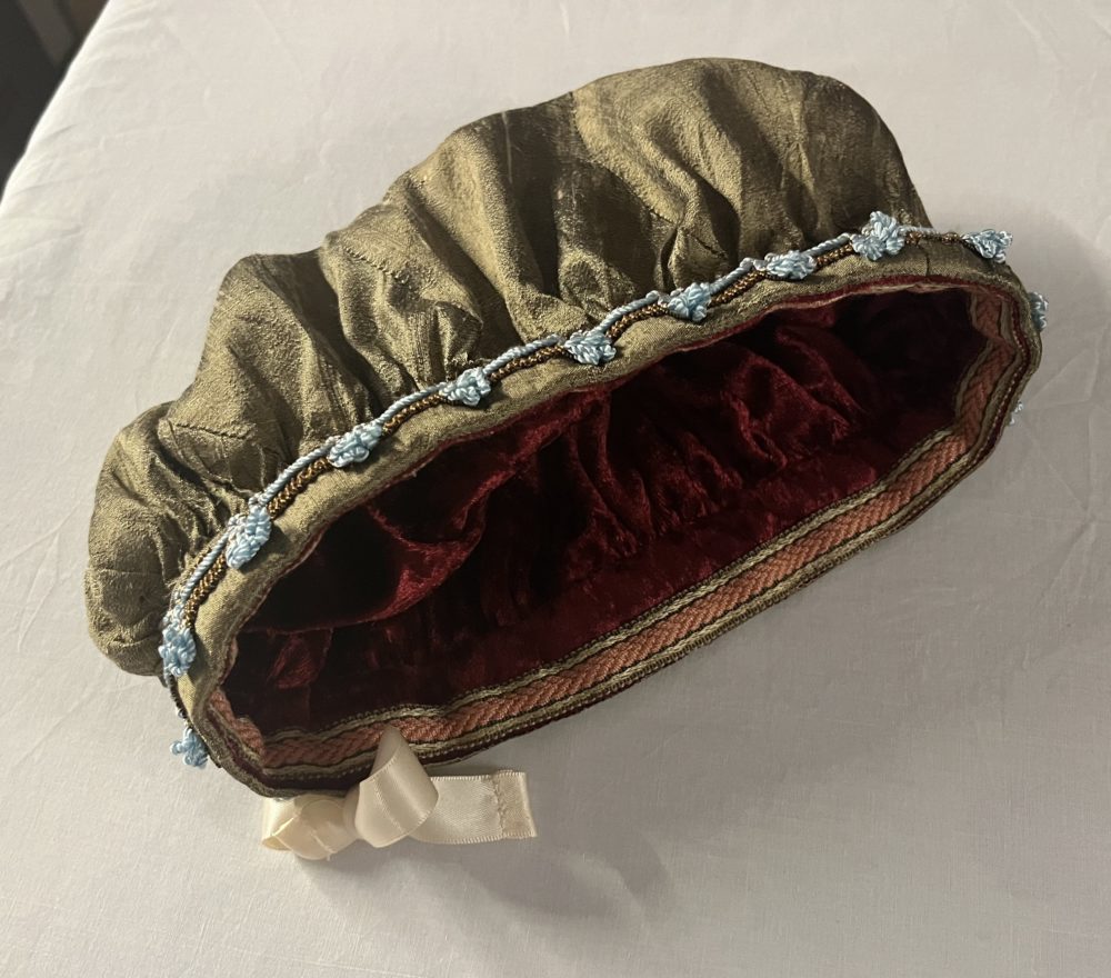 Bérêt réversible velours grenat et taffetas de soie vieil or (7)