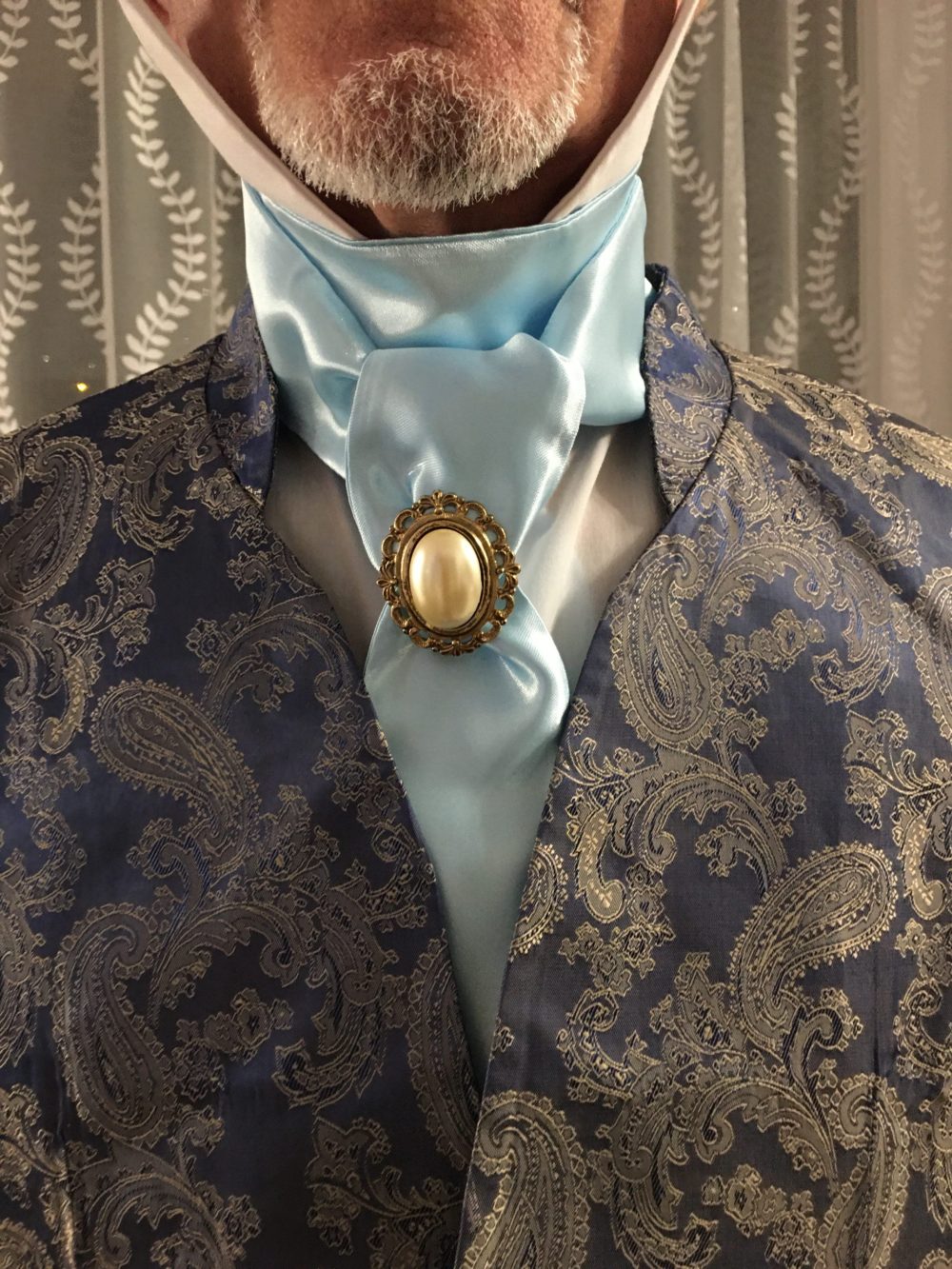 Foulard-cravate en satin de coton bleu ciel