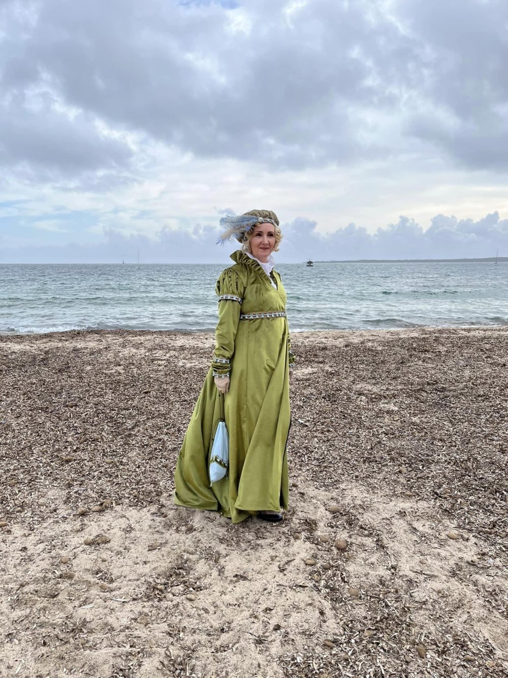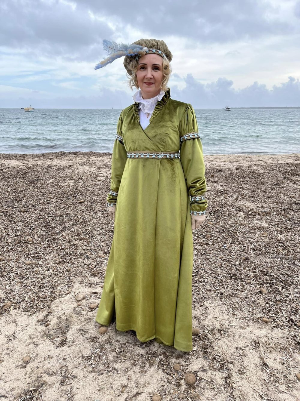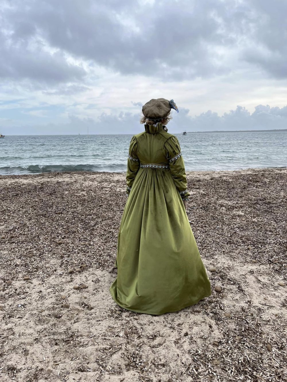 Pelisse Croisée en Velours Vert Olive et Galon Crocheté
