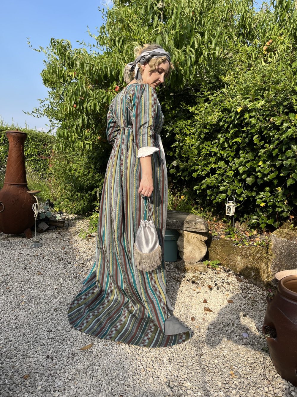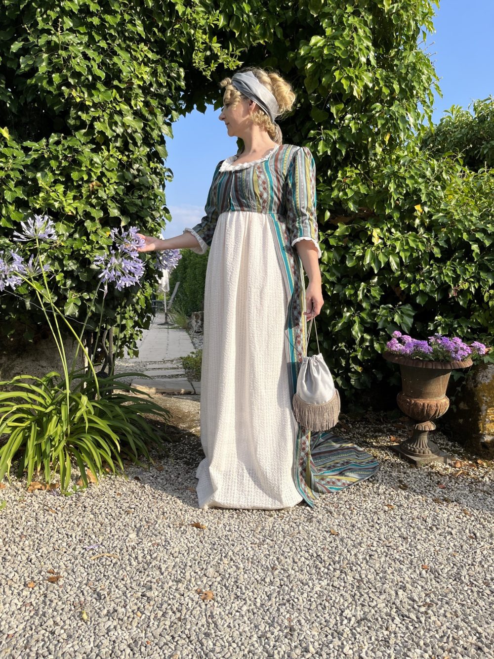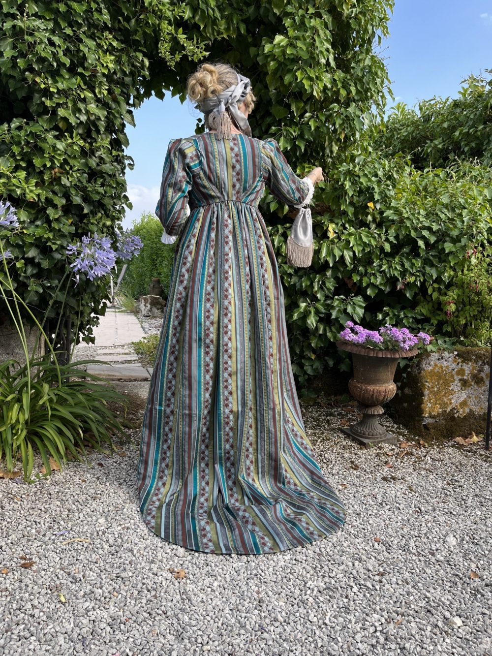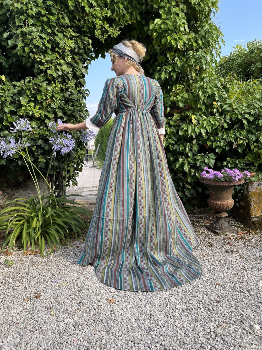 Robe en coton brodé et manteau de robe en jacquard rayé