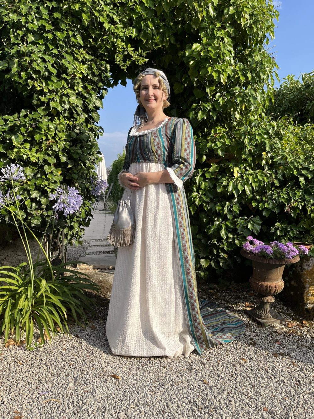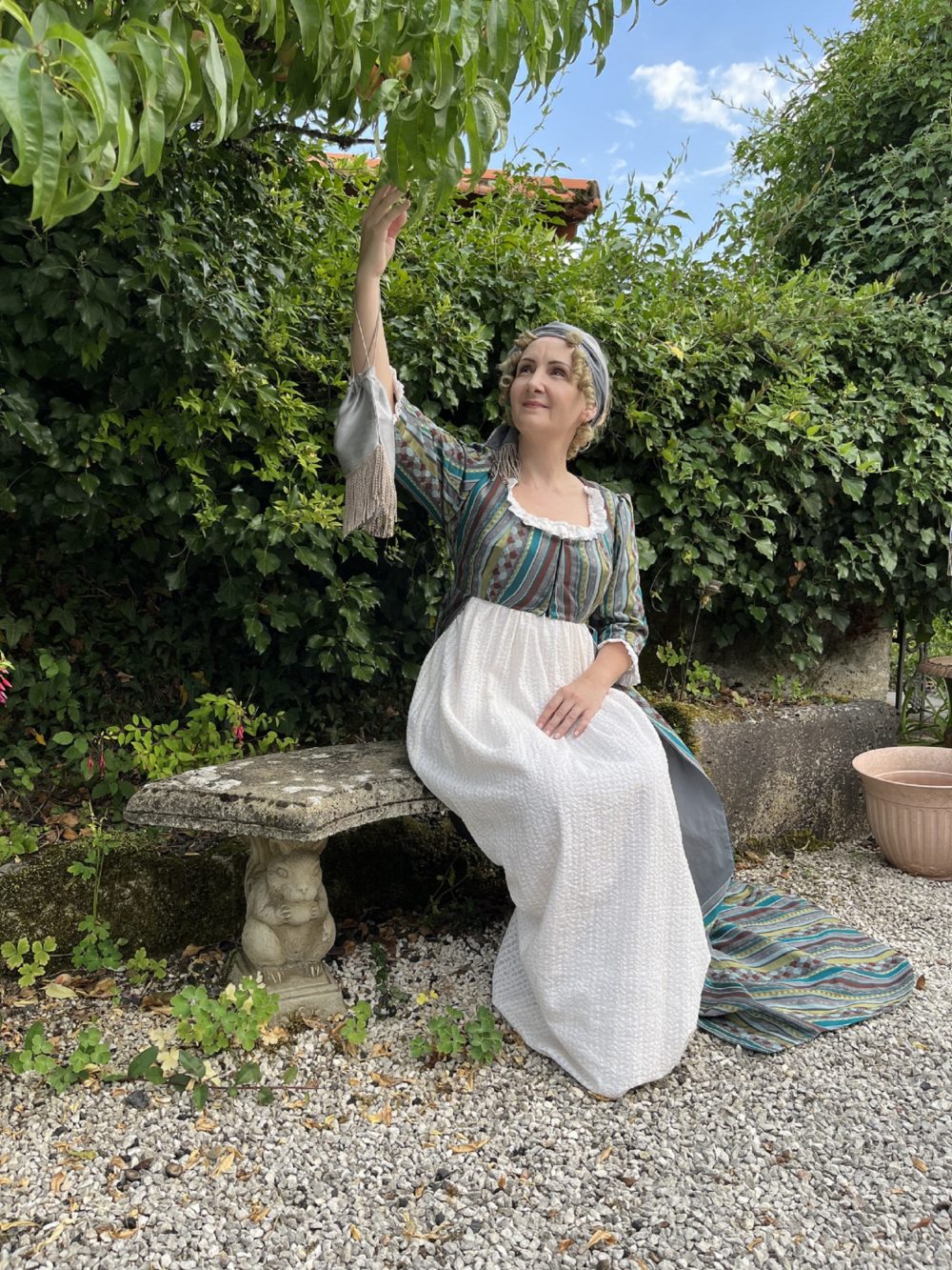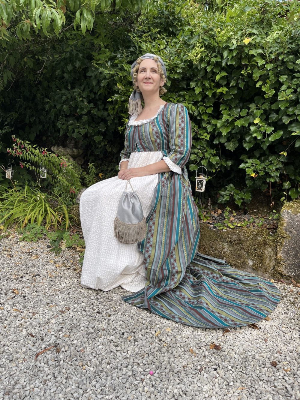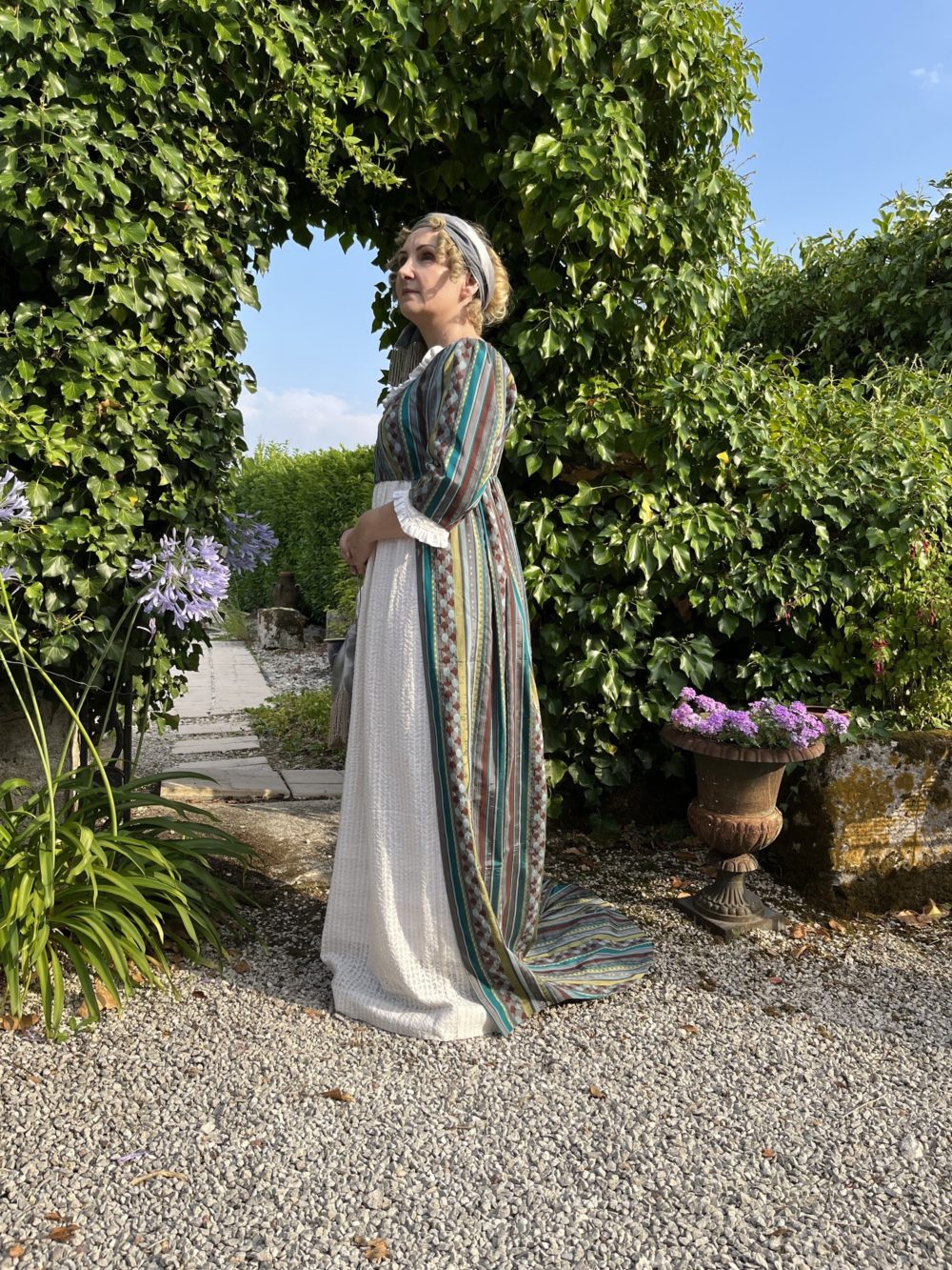 Robe en coton brodé et manteau de robe en jacquard rayé